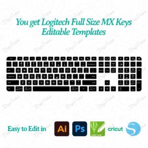 Logitech MX Keys S Keyboard Full Size Skin Editable Template by DigiArtist Store is easy to cut and use, allowing users to select the design that best suits their style. Logitech MX Keys S Keyboard Skin Cut Files for Cricut Printable Templates are available in AI, EPS, SVG, PDF, and PNG files. Use any software for editing, with Adobe Illustrator being the recommended choice for optimal customization.
